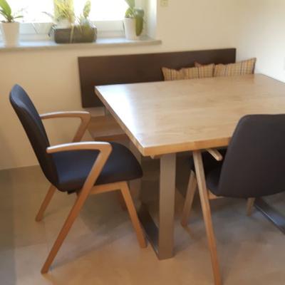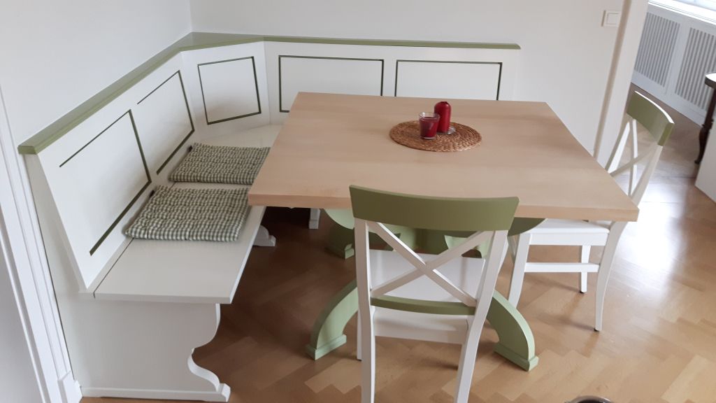 Gibt es etwas gemütlicheres als an einer Eckbank mit einem großen Tisch zu verweilen? Fast immer komplett in Massivholz gearbeitet passen wir das Design an ihre Wünsche und die räumlichen Gegebenheiten an. Ob in glatt oder astig, in Eiche oder Ahorn, mit Heizkörpergitter oder Truhe, mit Auszugstisch oder Tischverlängerung, mit Stollenfuß oder klassisch. Kein Wunsch bleibt unerfüllt. Dazu fertigen wir gerne die passende Vitrine oder das passende Buffet.